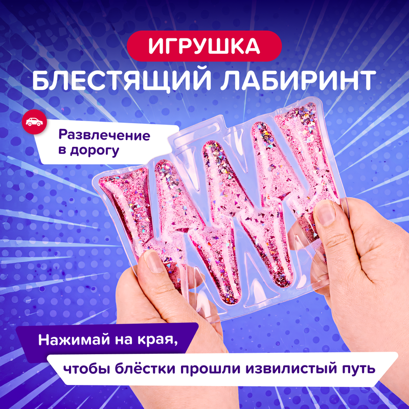 Игрушка "Блестящий лабиринт", Play the Game, подходит для спокойный игр дома и в дороге. При нажатии жидкость красиво перетекает внутри, создавая завораживающий эффект. Для детей от 3 лет. Состав: ПВХ, вода, ПЭТ. Товар представлен в ассортименте.