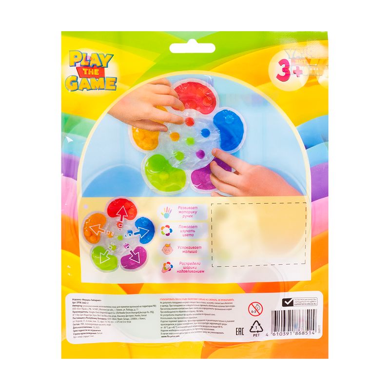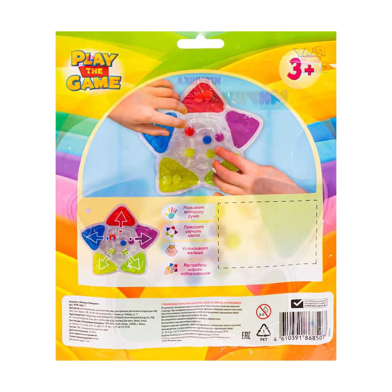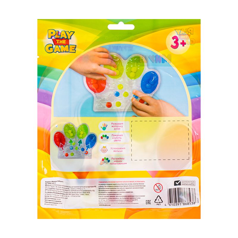 Игрушка "Мнушка-лабиринт", Play the Game, создана для спокойной и увлекательной игры. Необходимо с помощью лёгкого надавливания распределить шарики по цветам! Игра помогает успокоить малыша, знакомит ребёнка с цветами и развивает моторику ручек. Для детей от 3 лет. Состав: ПВХ, полиакриловая кислота, вода. Товар представлен в ассортименте.