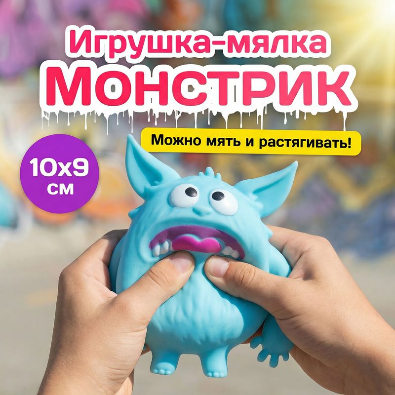 Игрушка-мялка "Монстрик", Play the game — яркий антистресс для весёлых игр и снятия напряжения. Мягкая и эластичная игрушка приятно мнётся в руках и помогает занять ребёнка дома или в дороге. Для детей от 3 лет. Приблизительный размер игрушки: 10х9 см. Состав: термопластичная резина, песок. Товар представлен в ассортименте.