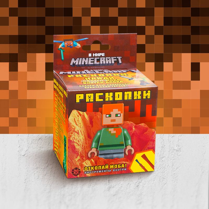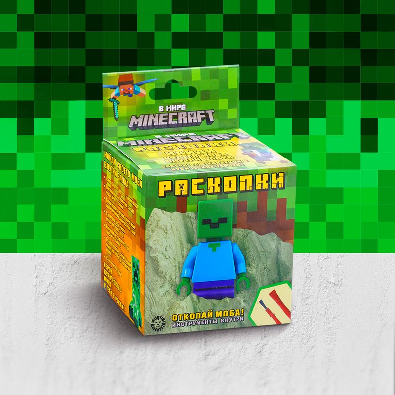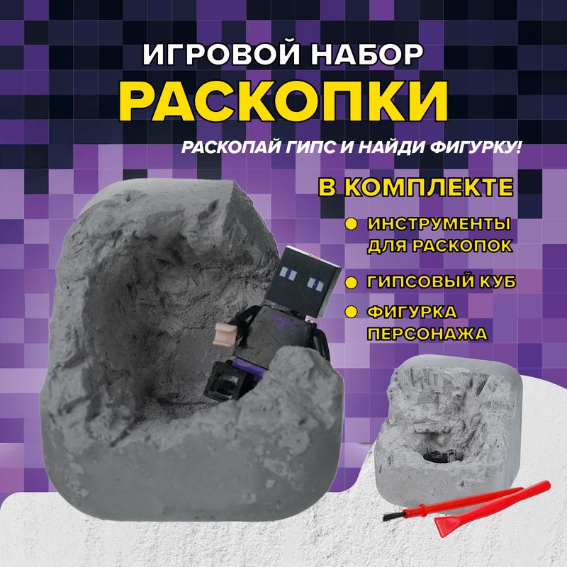 Игровой набор "Раскопки" "В мире Minecraft" – это настоящая находка для юных археологов и поклонников культовой игры! С помощью инструментов, входящих в набор, необходимо раскопать гипсовый куб и извлечь детали фигурки персонажа. Перед использованием ознакомьтесь с информацией на упаковке. Для детей от 3 лет. Состав: гипс, пластмасса. Товар представлен в ассортименте.