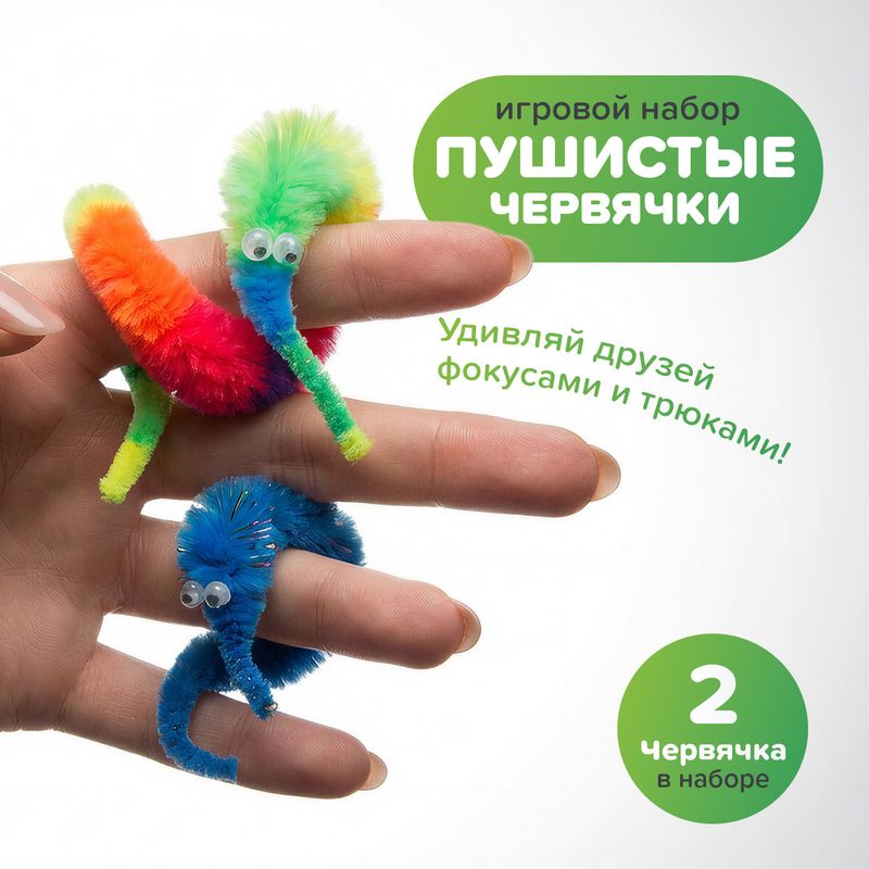 Игровой набор "Пушистые червяки", Play the Game, создан для весёлых игр и необычных представлений! Ребёнок научится показывать интересные фокусы, сможет придумывать свои трюки и тренировать ловкость рук. В наборе 2 червяка. Варианты фокусов указаны на упаковке. Для детей от 3 лет. Состав: полиэстер, нейлон. Товар представлен в ассортименте.