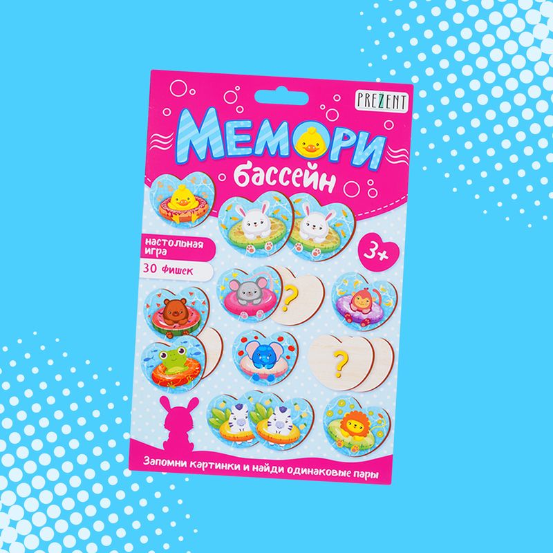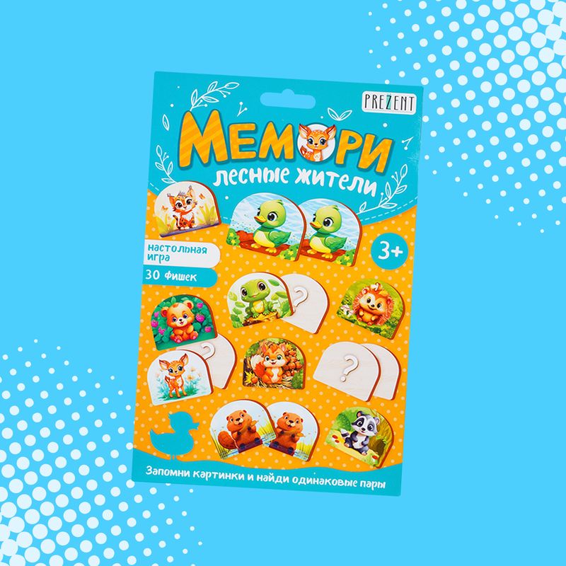 Настольная игра "Мемори" – увлекательная тренировка памяти и внимания. Задача проста: запоминайте картинки и находите одинаковые пары. Игра подойдёт как детям, так и взрослым. В наборе 30 фишек. Для детей от 3 лет. Состав: ЛХДФ, картон, ламинационная пленка. Товар представлен в ассортименте.
