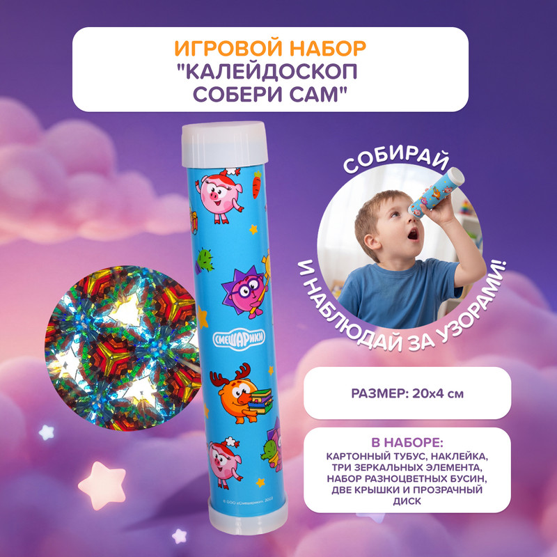 Арт. 5610243Игровой набор "Калейдоскоп. Собери сам" – чудесное развлечение для ребёнка! Набор включает в себя картонный тубус, три зеркальных элемента, наклейку, набор разноцветных бусин, 2 крышки, прозрачный диск. Следуя простой инструкции на упаковке, можно собрать настоящий калейдоскоп и наблюдать за узорами! Для детей от 3 лет. Размер готового изделия: 20х4 см. Состав: пластмасса, бумага. Товар представлен в ассортименте.