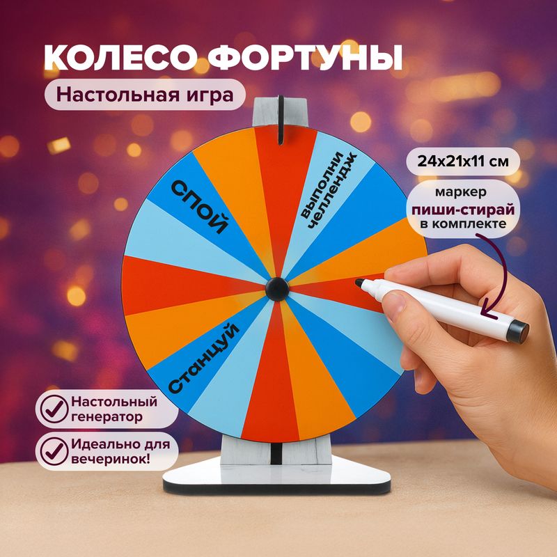 Настольная игра "Колесо Фортуны", Prank Bank – это весёлое развлечение для большой компании! Отлично подходит для розыгрыша призов или игры в фанты. В комплекте 5 деревянных деталей и маркер пиши-стирай. Для детей от 3 лет. Размер в собранном виде: 24х21х11 см. Состав: ЛХДФ, МДФ, картон, ламинационная пленка, фурнитура. Товар представлен в ассортименте.