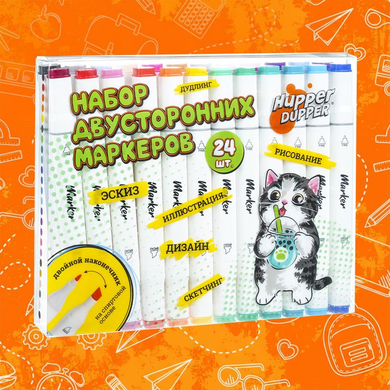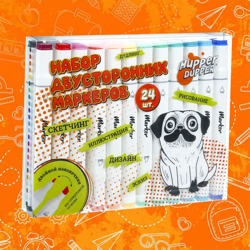 Набор двусторонних маркеров, Hupper Dupper, 24 шт., в ассортименте