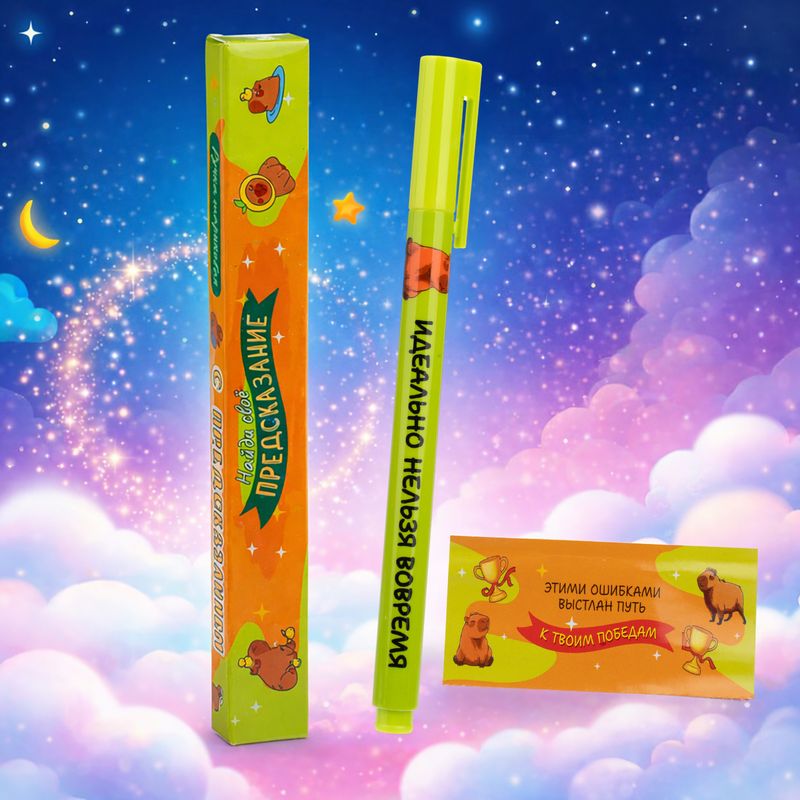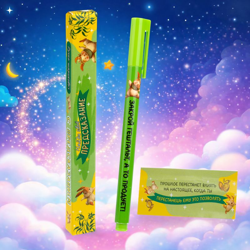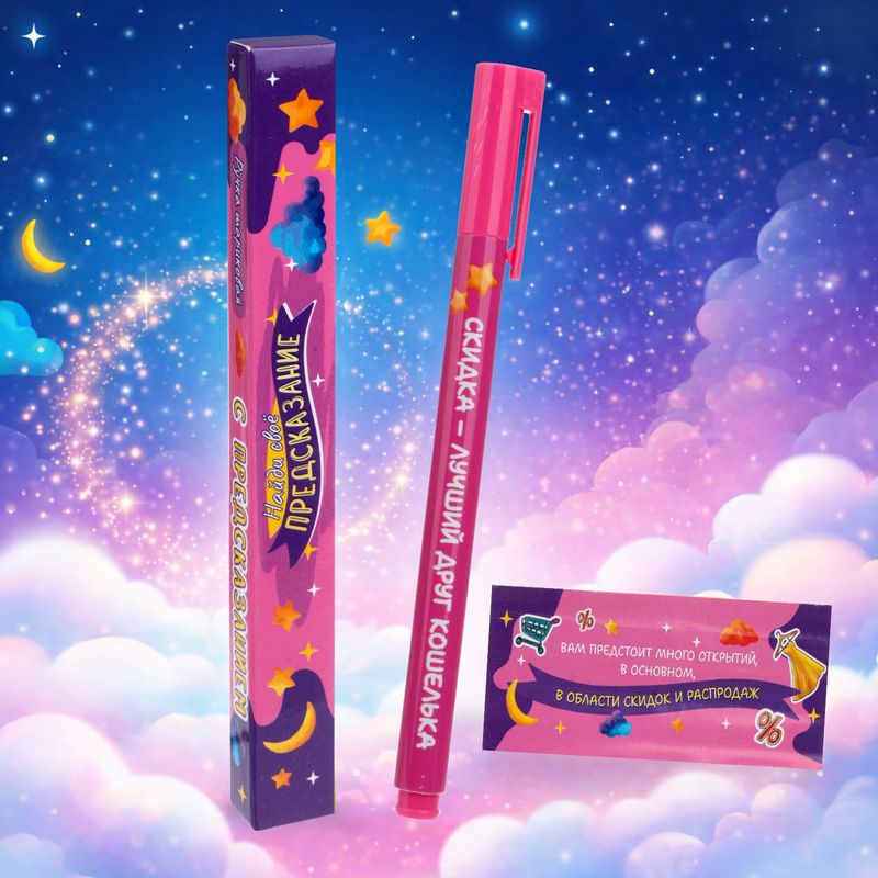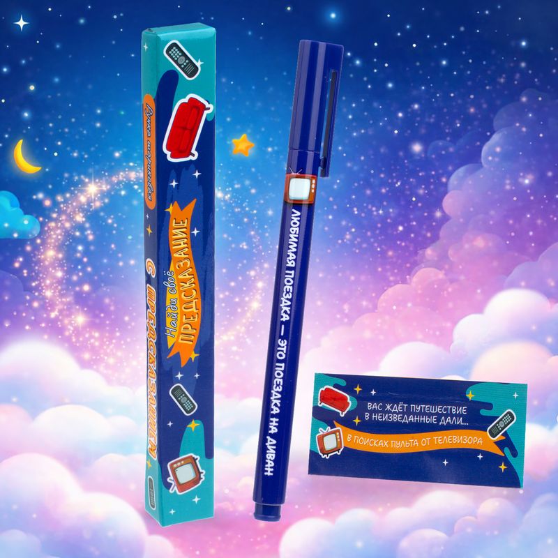 Ручка шариковая с предсказанием – это оригинальный подарок для себя и близких! Вдохновляющая или забавная надпись поднимет настроение и поможет настроиться на учебный или рабочий процесс. Цвет чернил: синий. Состав: АБС-пластик, ПП, чернила. Товар представлен в ассортименте.