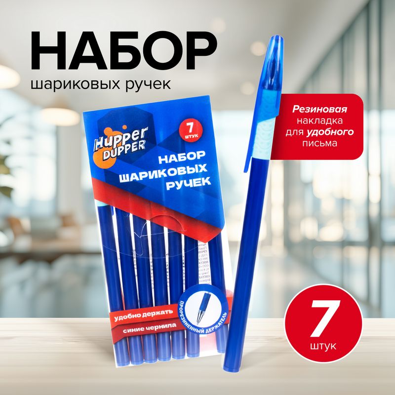 Набор шариковых ручек, Hupper Dupper – это практичный вариант для учёбы и офиса! Чернила мягко ложатся на бумагу. Благодаря резиновой насадке ручку удобно держать во время письма. В упаковке 7 ручек. Товар представлен в ассортименте.
