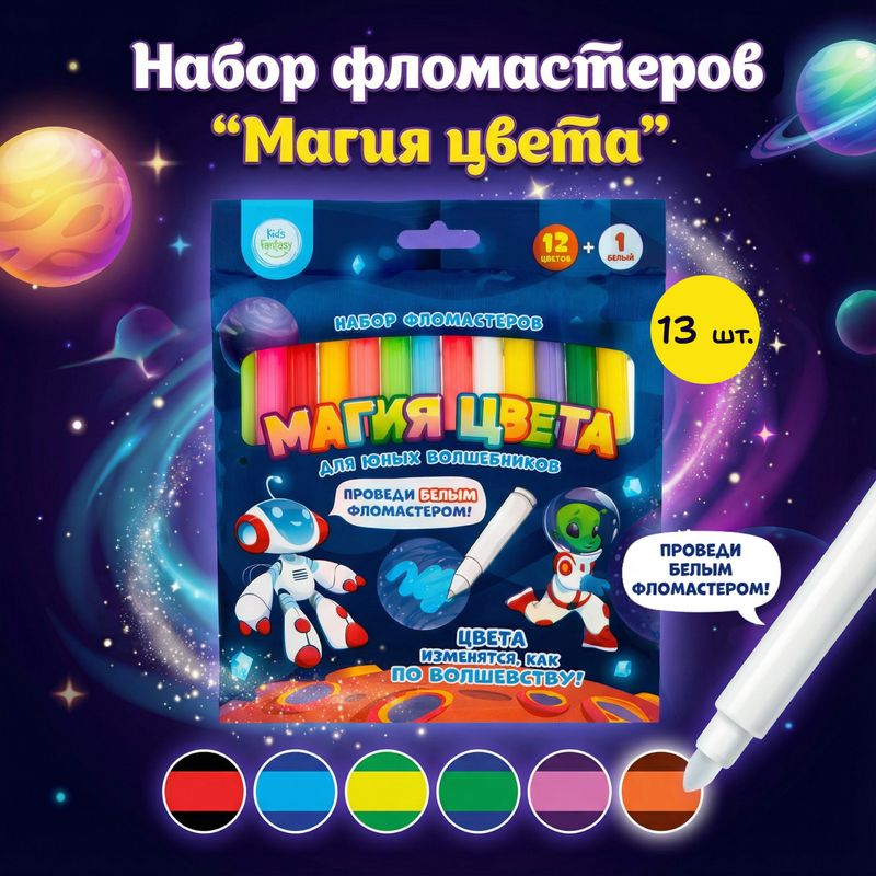Набор фломастеров "Магия цвета", Kid`s Fantasy, 13 шт., в ассортименте