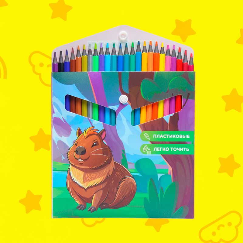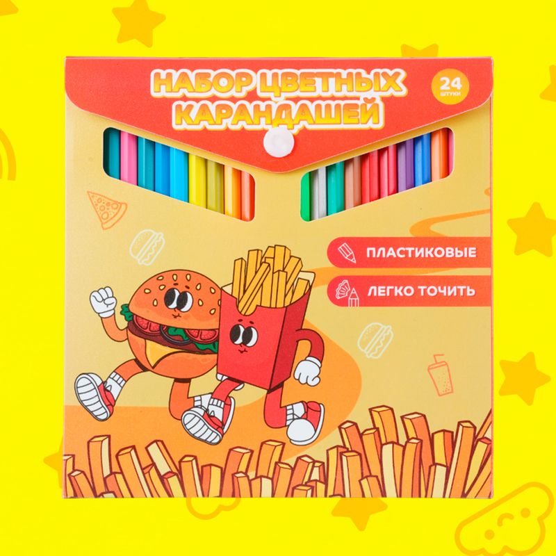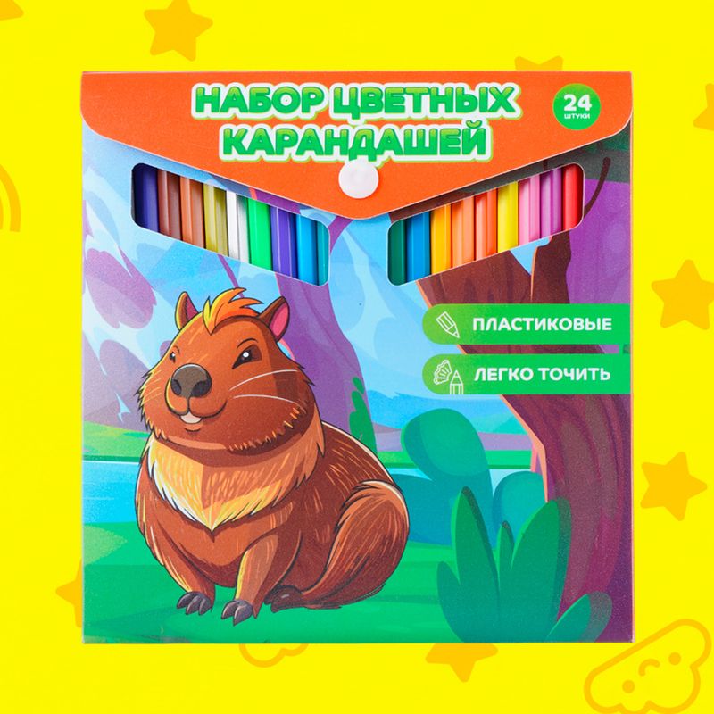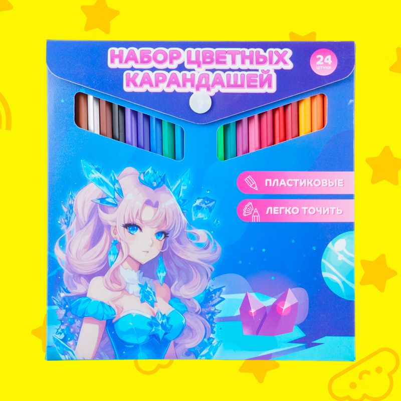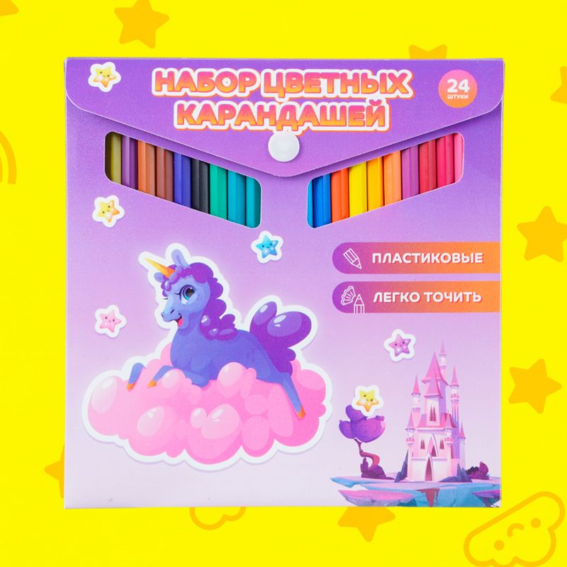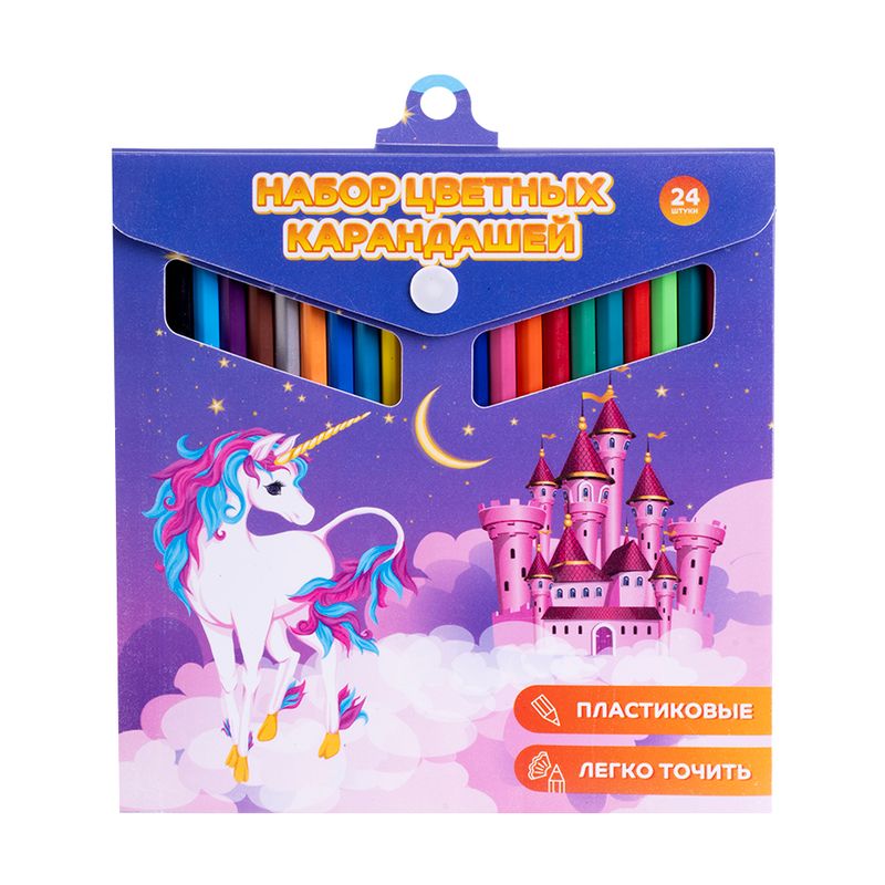 Набор цветных карандашей – отличный подарок юному художнику. Подойдёт для рисования в школе и дома. Карандаши сделаны из прочного пластика. Легко точить. В наборе карандаши 24 цветов. Состав: полистирол, полиэтилен. Товар представлен в ассортименте.