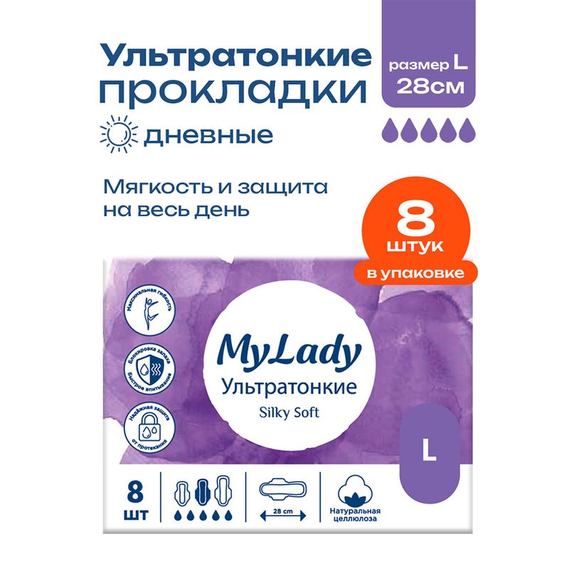 Прокладки "Silky Soft", My Lady, L, 8 шт.