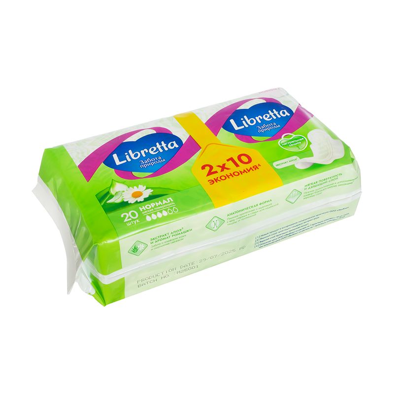 Прокладки, Libretta, с мягкой поверхностью и дышащих слоем подарят Вам комфорт и чистоту во время критических дней. Впитываемость: 4/7. В упаковке 20 прокладок.