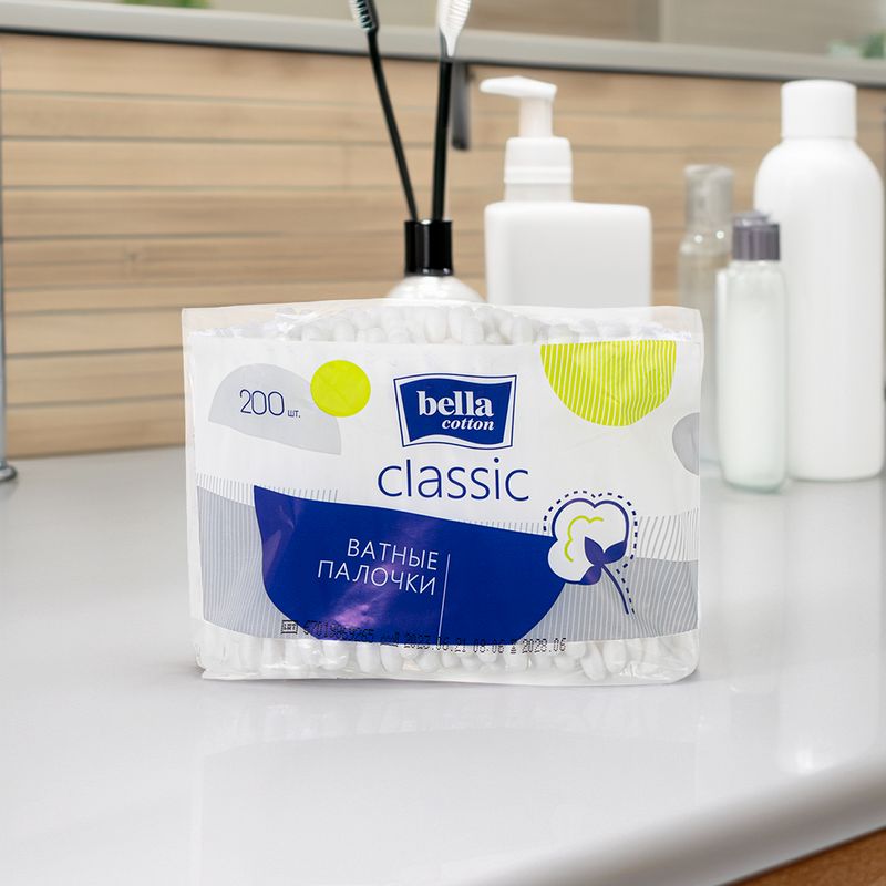 Ватные палочки, Bella cotton, пригодятся для ежедневных гигиенических и косметических процедур. Вата из 100% хлопка. Количество палочек: 200 шт.