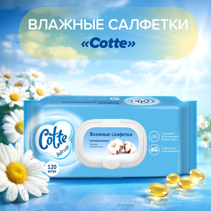 Влажные салфетки, Cotte, 120 шт.