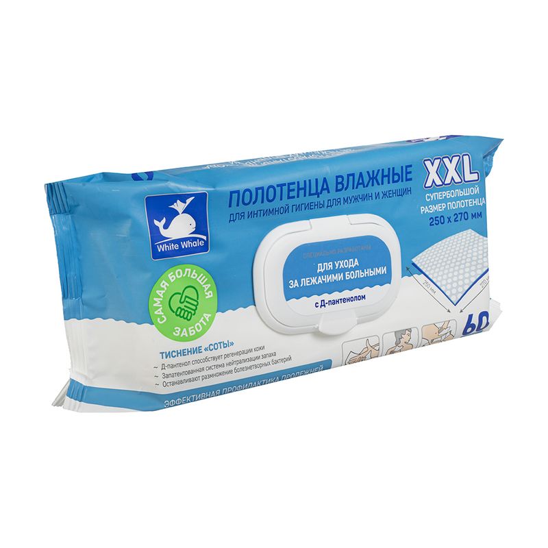 Влажные полотенца для интимной гигиены предназначены для ухода за лежачими больными. Способствуют эффективной профилактике пролежней. Подходят мужчинам и женщинам. Содержат Д-пантенол, способствующий регенерации кожи. Нейтрализуют запахи. Останавливают размножение болезнетворных бактерий. В упаковке 60 полотенец XXL (размер: 25х27 см). Перед использованием ознакомьтесь с информацией на упаковке.