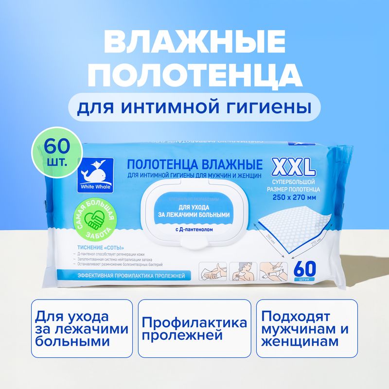 Влажные полотенца для интимной гигиены, XXL, 60 шт.