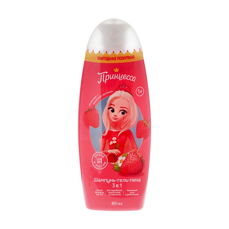 Шампунь-гель-пена 3 в 1 "Принцесса" – универсальное средство для купания детей от 1 года. Обеспечивает бережный уход и увлажнение. Мягкая формула без SLS, парабенов, красителей, аллергенов. Перед применением ознакомьтесь с инструкцией и мерами предосторожности на упаковке. Объём: 400 мл. Товар представлен в ассортименте.