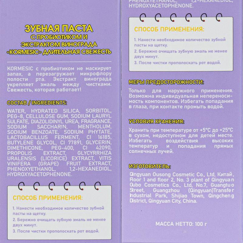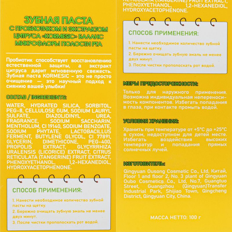 Зубная паста, KORMESIC, с пробиотиком помогает заботиться о полости рта и дарит длительную свежесть! Перед использованием ознакомьтесь с инструкцией и мерами предосторожности на упаковке. Масса нетто: 100 г. Товар представлен в ассортименте.
