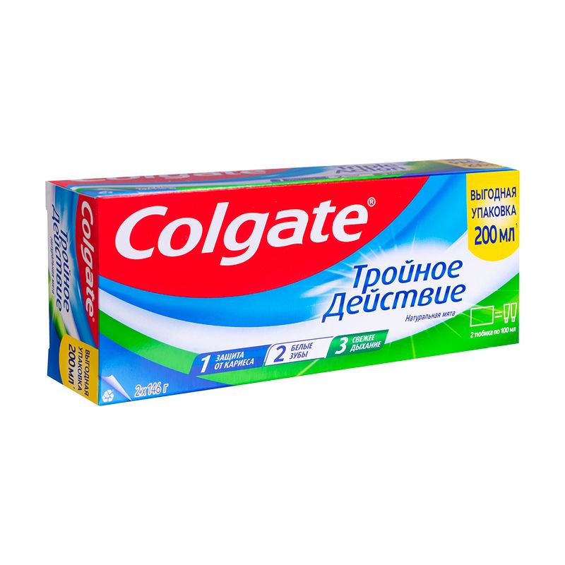 Зубная паста, Colgate, Тройное действие, 100 мл+100 мл