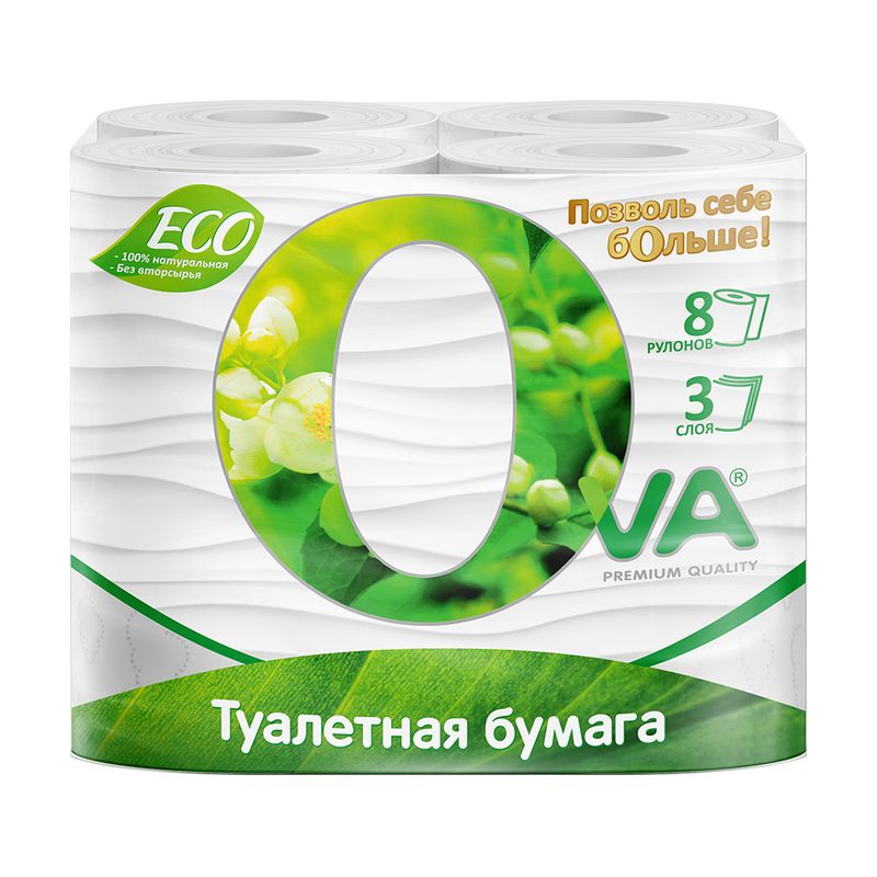 Туалетная бумага OVA, 3 слоя, 8 рулонов