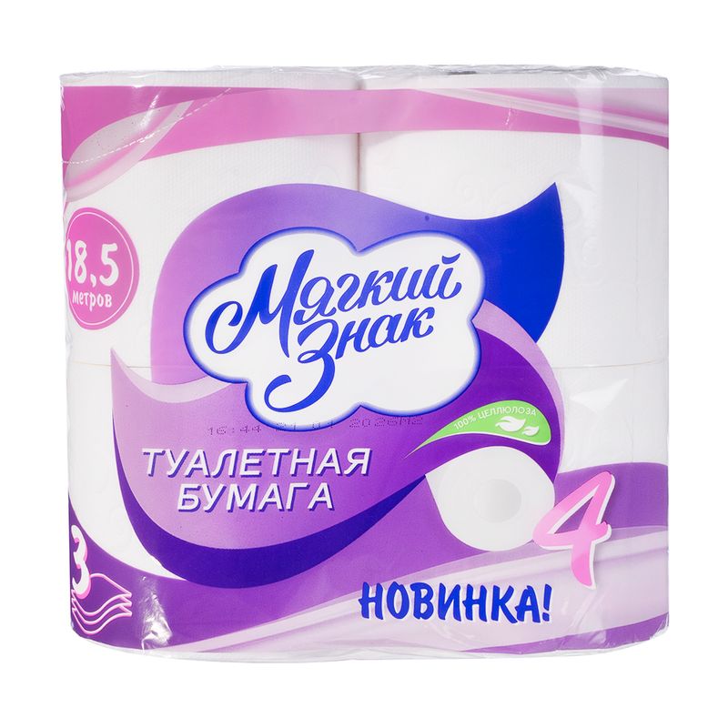 Туалетная бумага, Мягкий Знак, обеспечивает бережное использование и надёжность, хорошо впитывает и подходит для всей семьи. Трёхслойная. В упаковке 4 рулона.