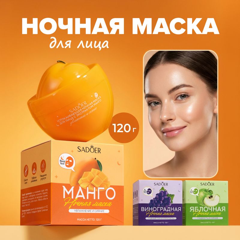 Ночная маска для лица, SADOER – отличный выбор для ежедневного ухода за кожей лица. Способствует увлажнению, возвращает коже упругость и сияние. Перед применением ознакомьтесь с инструкцией и мерами предосторожности на упаковке. Объём: 120 г. Товар представлен в ассортименте.