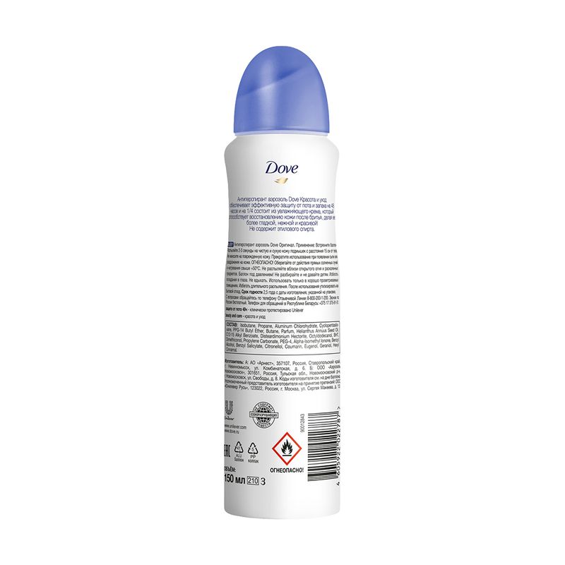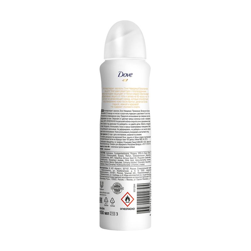 Антиперспирант, Dove, не оставляет белых следов на одежде и обеспечивает эффективную защиту от пота и запаха на 48 часов. Не содержит этилового спирта. Перед использованием ознакомьтесь с инструкцией и мерами предосторожности на упаковке. Объём: 150 мл. Товар представлен в ассортименте.