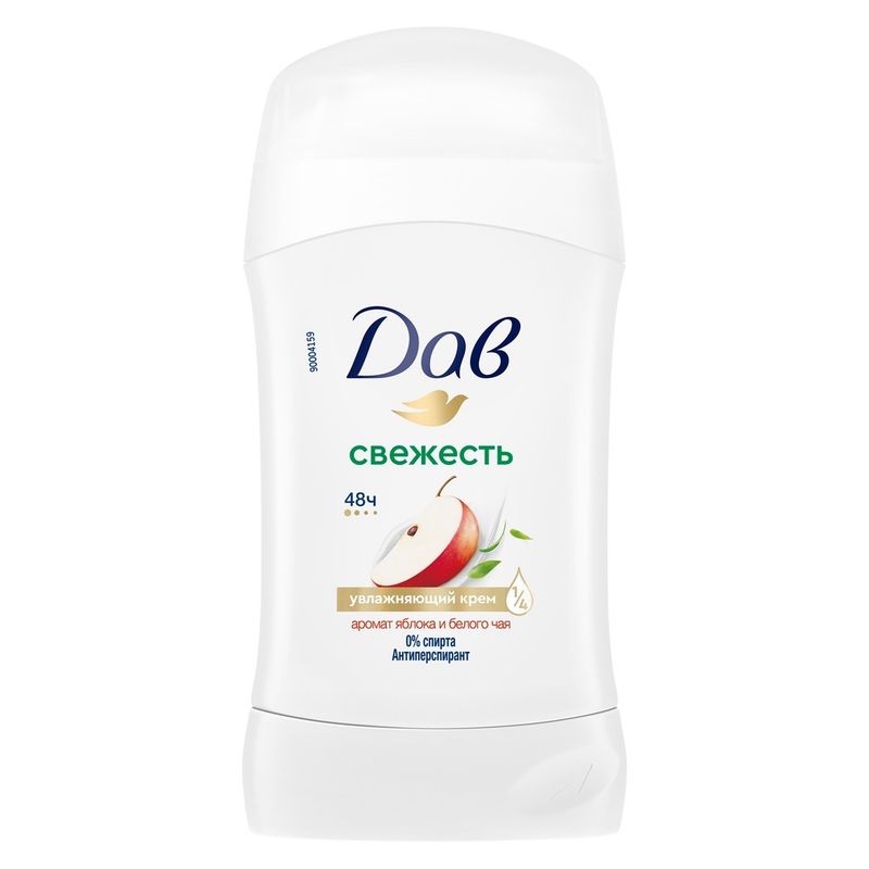 Женский антиперспирант, Дав, обеспечивает защиту от пота и запаха до 48 часов. На ¼ состоит из увлажняющего крема. Имеет нежный аромат. Тип: стик. Объём: 30 мл. Товар представлен в ассортименте.