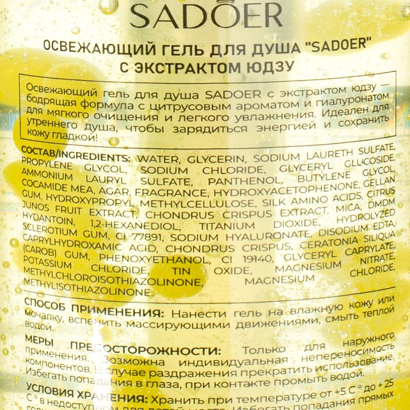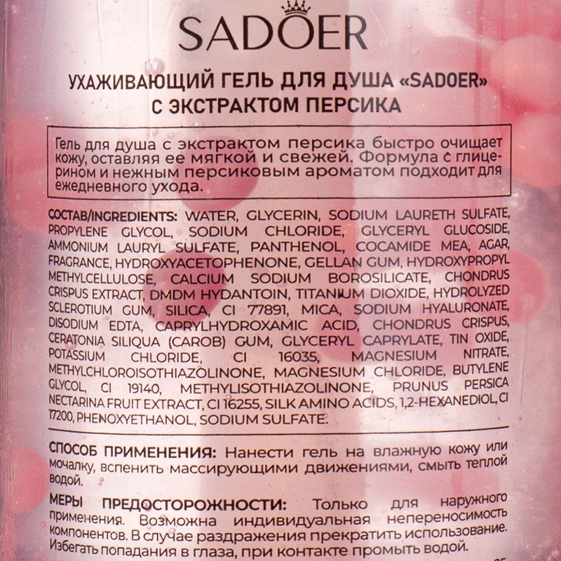 Гель для душа, SADOER, обеспечивает мягкое очищение кожи, свежий аромат и приятное ощущение после использования. Подходит для ежедневного применения. С аминокислотами шёлка и пантенолом. Необычный формат с питательными жемчужинками! Перед использованием ознакомьтесь с инструкцией и мерами предосторожности на упаковке. Объём: 300 мл. Товар представлен в ассортименте.