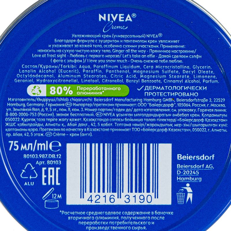 Увлажняющий крем, Nivea, быстро впитывается и глубоко питает кожу лица, рук и тела. Отличный выбор для ежедневного ухода. Объём: 75 мл. Товар представлен в ассортименте.