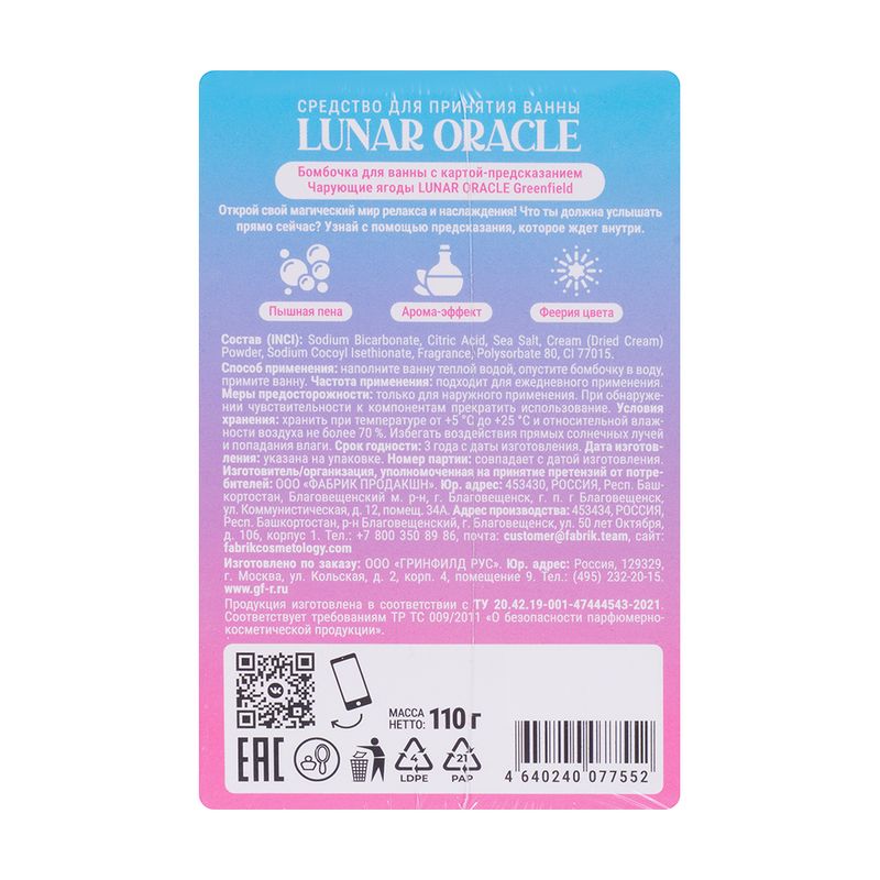 Бомбочка для ванны, LUNAR ORACLE, 110 г, в ассортименте