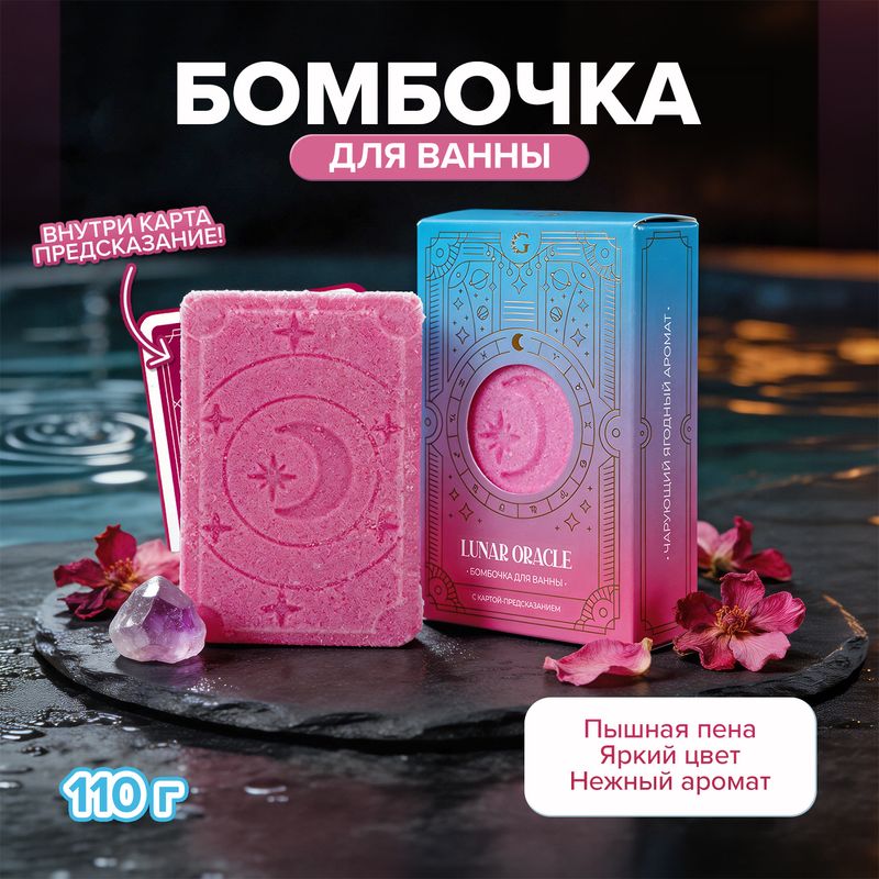 Бомбочка для ванны, LUNAR ORACLE, превратит водные процедуры в атмосферный ритуал отдыха. При растворении наполняет воду ароматом и создаёт лёгкий эффект шипения. Внутри — карта-предсказание, которая добавит элемент сюрприза и настроения. Перед использованием ознакомьтесь с инструкцией и мерами предосторожности на упаковке. Масса нетто: 110 г. Товар представлен в ассортименте.