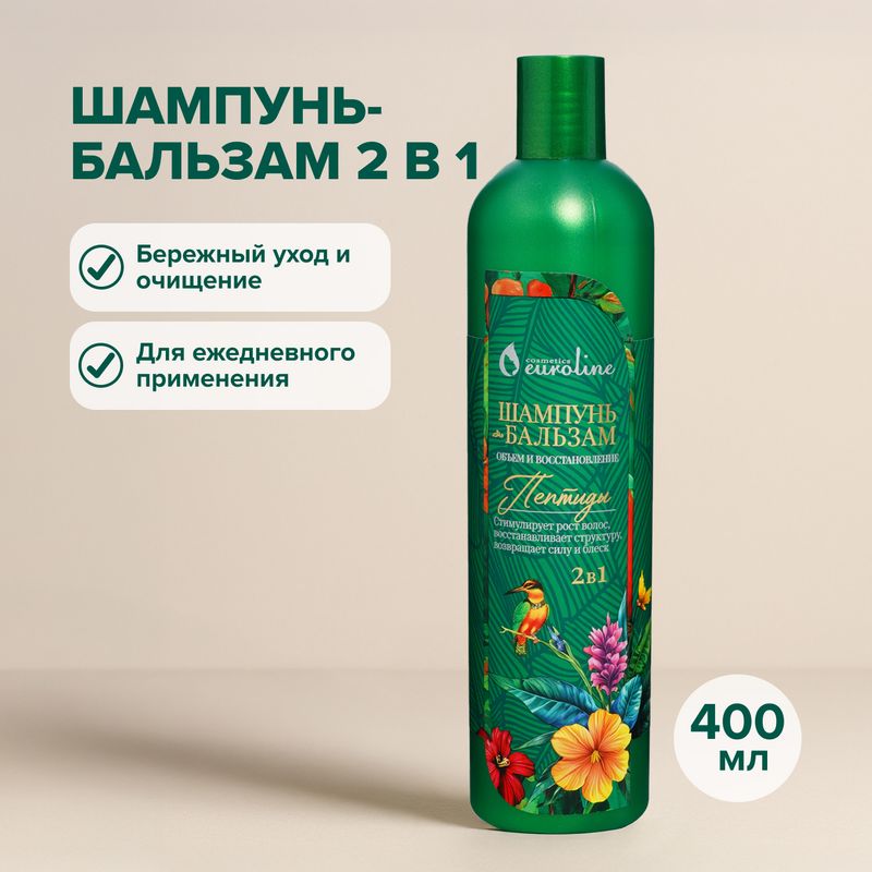 Шампунь-бальзам 2 в 1, ЕВРО ЛАЙН КОСМЕТИКС, 400 мл, в ассортименте