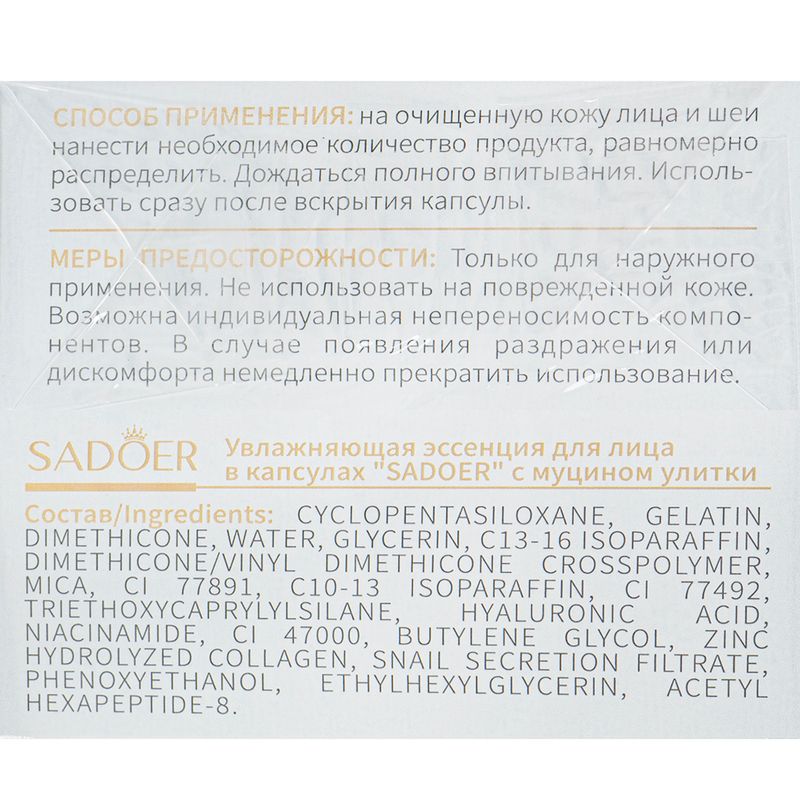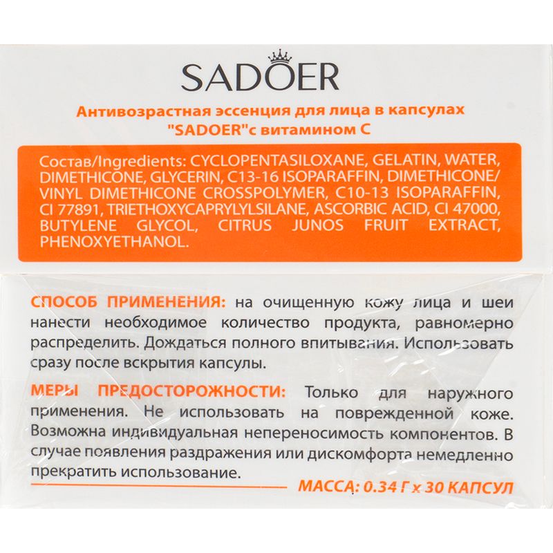 Эссенция для лица в капсулах, SADOER, 0,34 г, 30 шт., в ассортименте