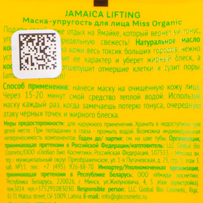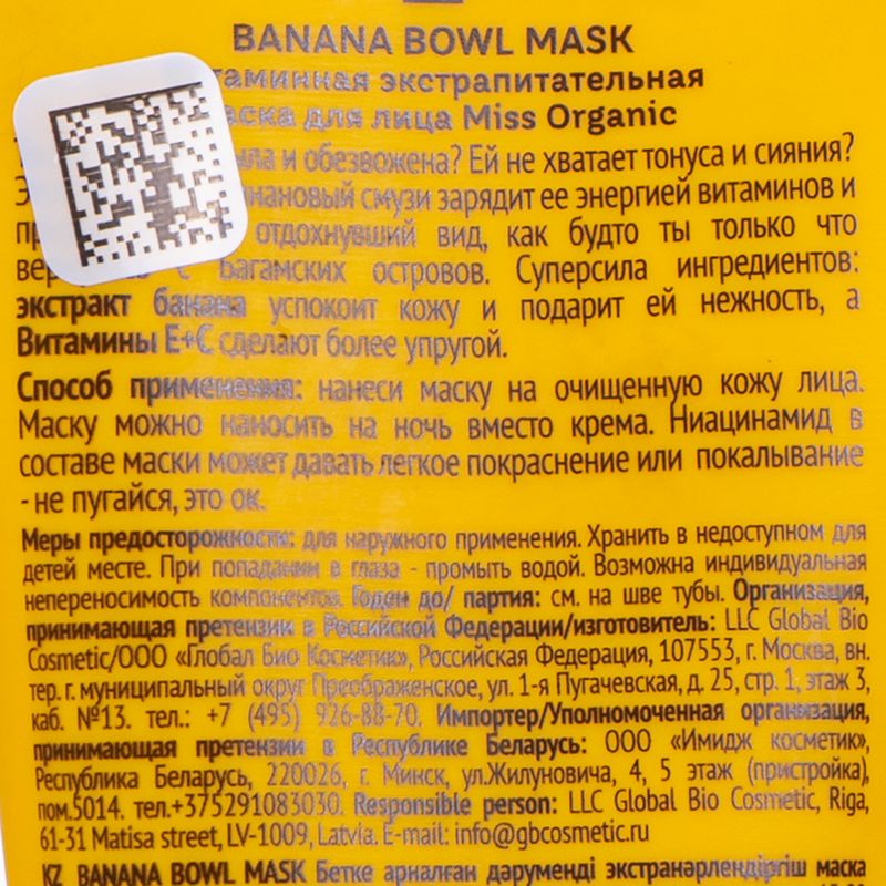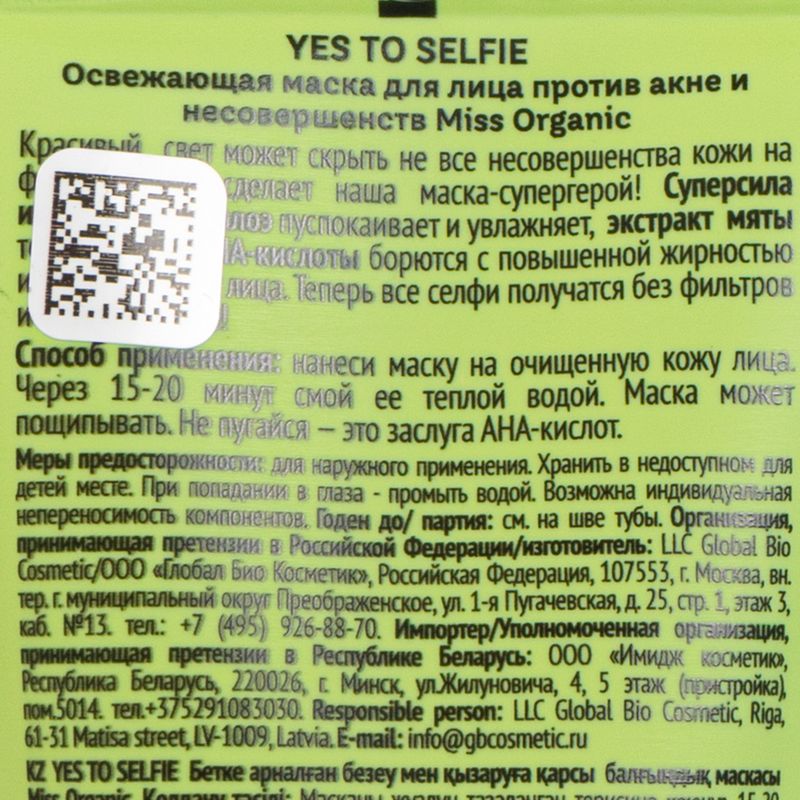 Маска для лица, Miss Organic, 50 мл, в ассортименте
