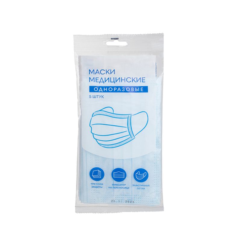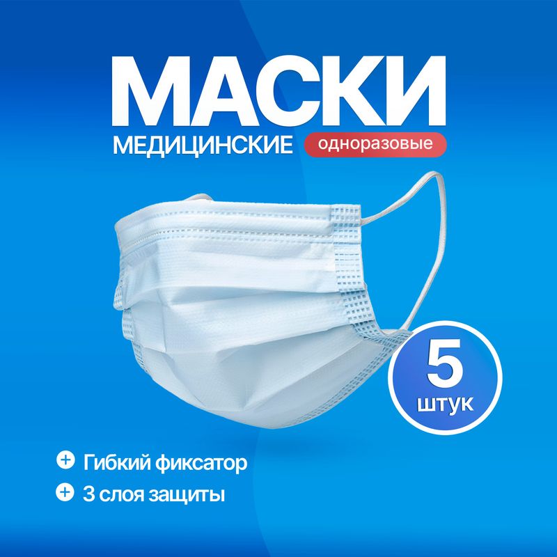 Маски одноразовые медицинские, 5 шт.