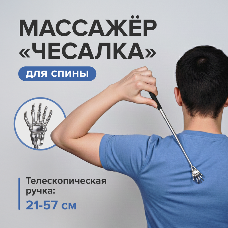 Массажёр "Чесалка" для спины, Relax Line, поможет быстро снять напряжение в мышцах. Телескопическая конструкция позволяет выдвигать массажёр на длину от 21 до 57 см. Удобно лежит в руке. Можно взять с собой на работу или в поездку. Состав: сталь, цинковый сплав, ПВХ. Товар представлен в ассортименте.
