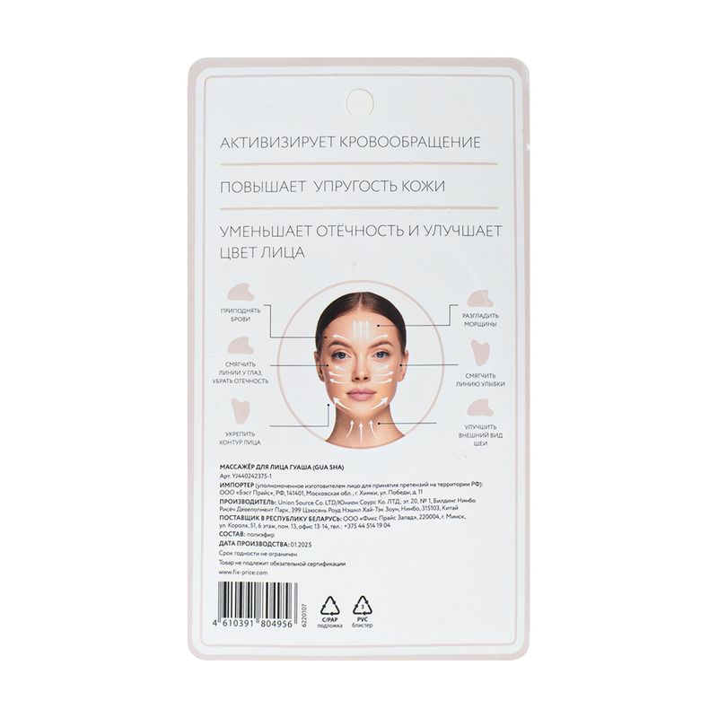 Массажёр для лица "Гуаша", Lovely, активизирует кровообращение, повышает упругость кожи, уменьшает отёчность и улучшает цвет лица. Можно также использовать для массажа тела. Инструкция по использованию указана на упаковке. В ассортименте представлены массажёры с гладким и рельефным краем. Размер: 8,5х5,5х0,7см. Состав: полиэфир.