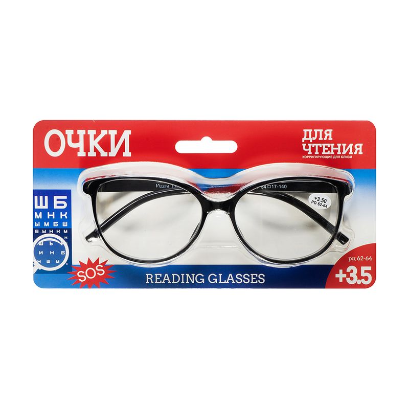 Очки корригирующие для близи предназначены для людей с дальнозоркостью. Подходят для комфортного чтения. Материал линзы и оправы – пластик. Очки имеют прочную, но облегчённую конструкцию. В ассортименте представлены следующие диоптрии: +1.5, +2, +2.5, +3.0, +3.5. Правила ухода за очками указаны на упаковке. Внимание! Не являются заменой очков, изготовленных по рецепту офтальмолога.