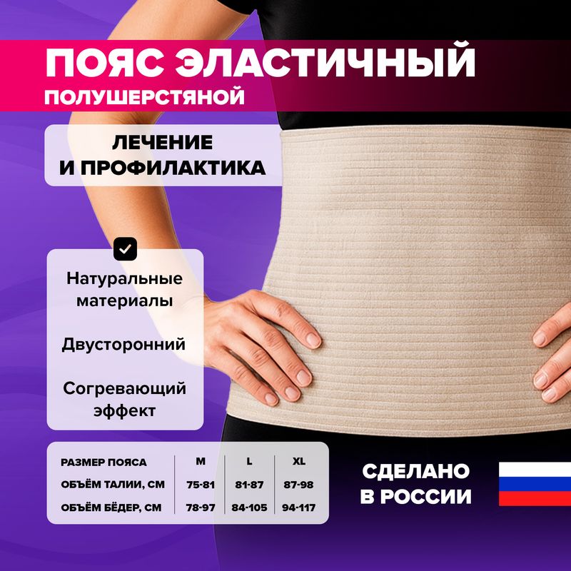 Пояс эластичный полушерстяной "Интекс" предназначен для лечения и профилактики воспалительных заболеваний поясничного отдела позвоночника. Оказывает согревающее действие, способствует увеличению кровотока. Обладает лёгким массажным эффектом. Пояс можно удобно и незаметно носить под одеждой в течение всего дня! Перед использованием ознакомьтесь с информацией на упаковке. В ассортименте представлены размеры M, L, XL. Состав: полушерсть, хлопок, латекс, полиэфир.