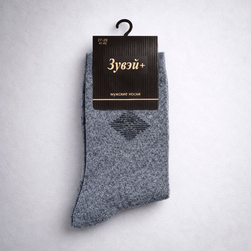 Носки мужские утеплённые, Зувэй+ – это комфортная модель на каждый день. Единый размер: 41-45. Состав: 7% шерсть, 30% акрил, 62% полиэстер, 1% спандекс. Товар представлен в ассортименте.