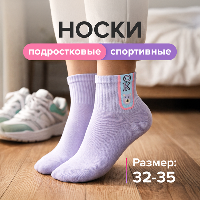 Носки подростковые, Зувэй+, отлично сочетаются с кроссовками и кедами. Размер: 7-9, 9-11. Состав: 62% хлопок, 36% полиэстер, 2% спандекс. Товар представлен в ассортименте.