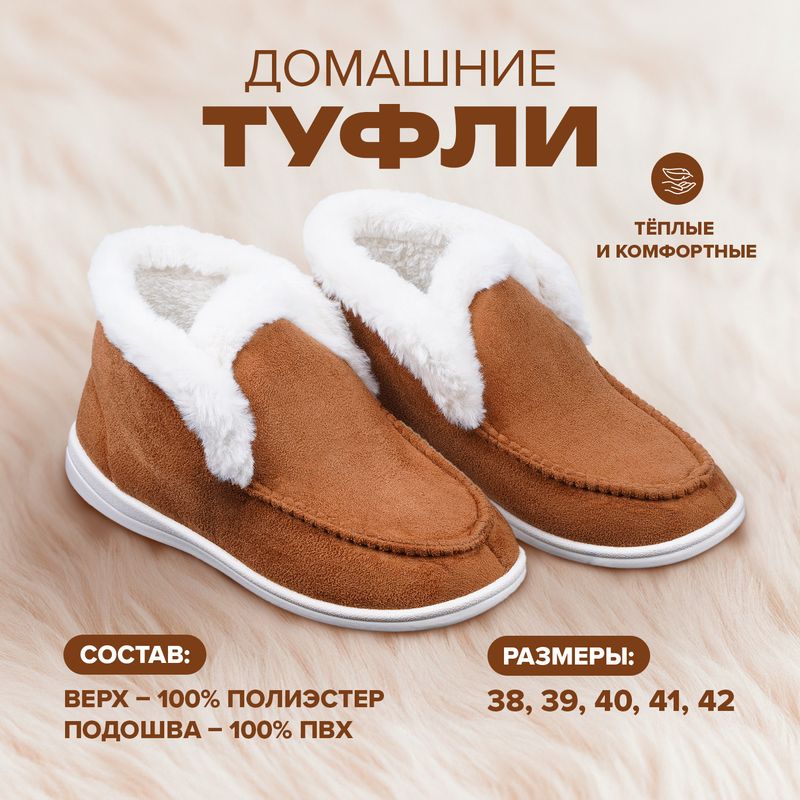 Домашние туфли, AMORA, подарят тепло и комфорт. Отличный вариант для подарка! Размеры: 38, 39, 40, 41, 42. Состав: верх – 100% полиэстер (текстильные материалы); подошва – 100% ПВХ. Товар представлен в ассортименте.
