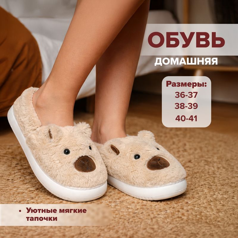 Обувь домашняя, Kolesnic — уютные тапочки с забавным дизайном, которые сразу поднимают настроение. Мягкий материал приятно ощущается на ногах. Размеры: 36-37, 38-39, 40-41. Состав: верх – 100% полиэфирное волокно; подошва – ЭВА; подкладка – 100% полиэфирное волокно. Товар представлен в ассортименте.