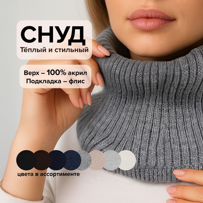 Шарф-горловина — удобный и тёплый аксессуар для холодного сезона. Плотно прилегает к шее, защищая от ветра и холода, не мешает движению и легко сочетается с любой верхней одеждой. Размер: 20х26 см. Состав: верх – 100% акрил; подкладка – флис. Товар представлен в ассортименте.