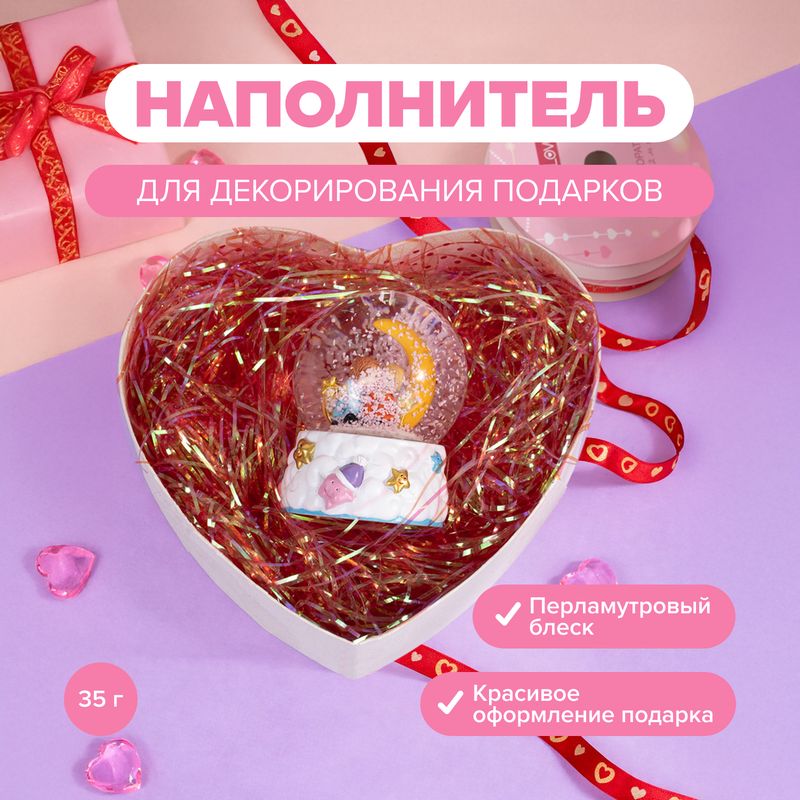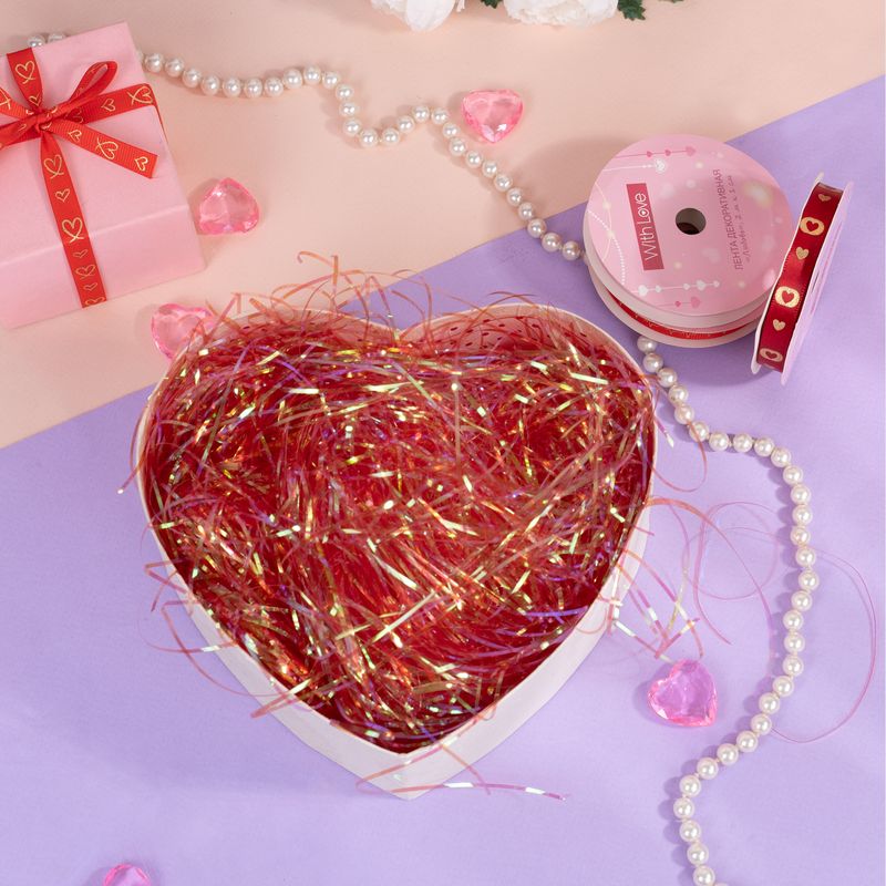 Наполнитель для декорирования подарков, With Love, поможет красиво оформить праздничные наборы и подарочные коробки. Создаст объём, зафиксирует содержимое и придаст подарку эстетичный, продуманный вид. Масса нетто: 35 г. Состав: ПЭТ. Товар представлен в ассортименте.