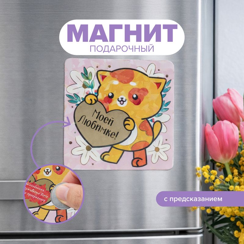 Магнит с предсказанием "8 марта" – милый способ поздравить с праздником! Нужно просто стереть защитный слой, чтобы увидеть послание. Товар представлен в ассортименте.