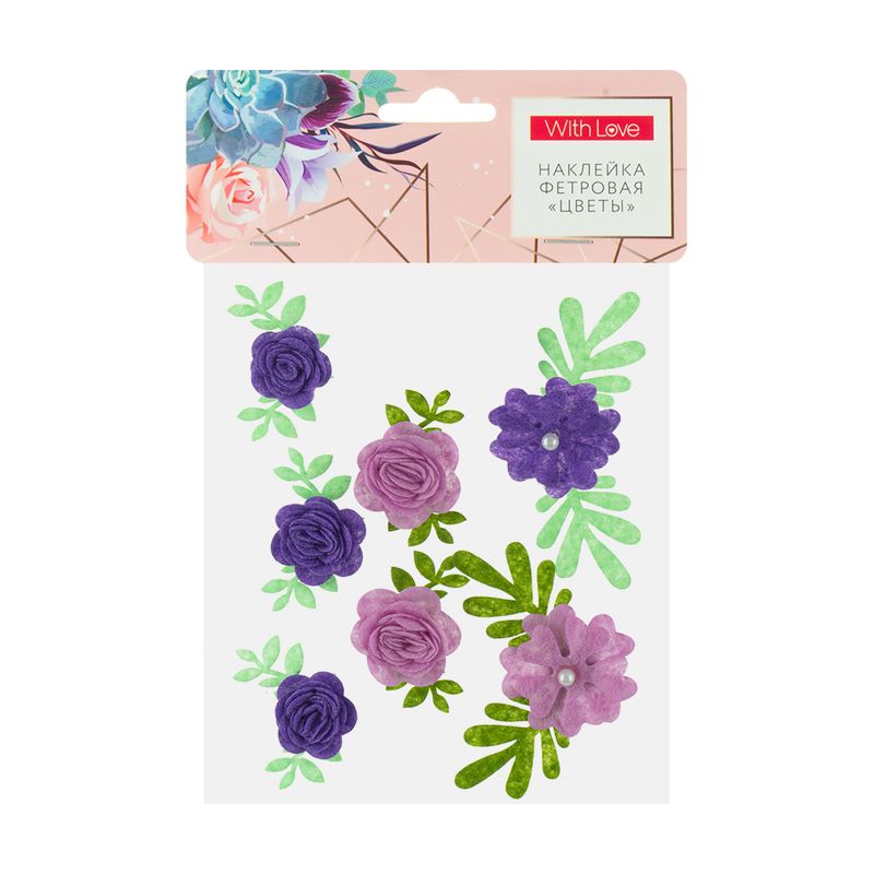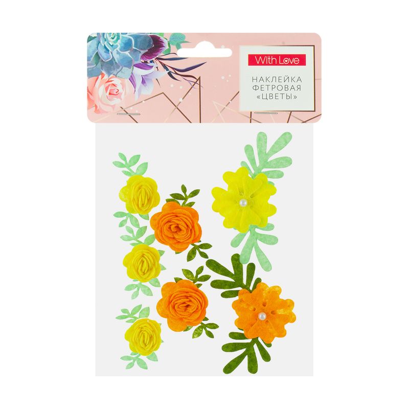 Наклейка фетровая "Цветы", With Love, в ассортименте
