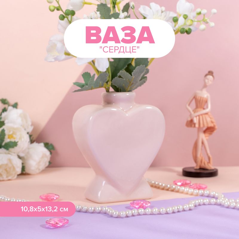 Ваза "Сердце", With Love, станет стильным акцентом в интерьере. Форма в виде сердца и нежные оттенки помогут создать романтичную атмосферу и красиво подчеркнуть свежие или декоративные цветы. Размер: 10,8х5х13,2 см. Состав: керамика. Товар представлен в ассортименте.