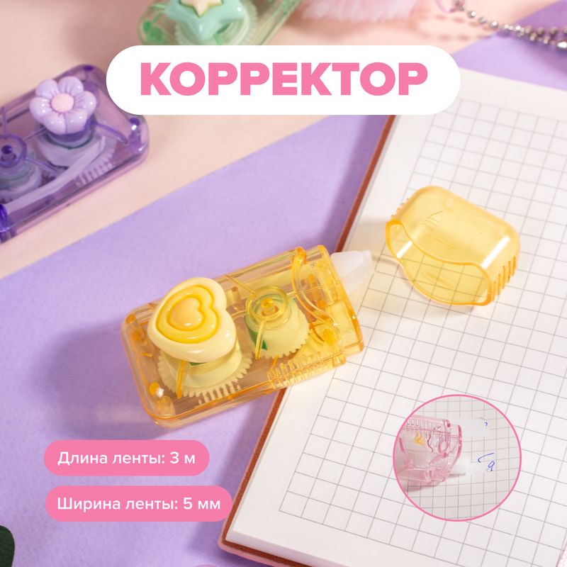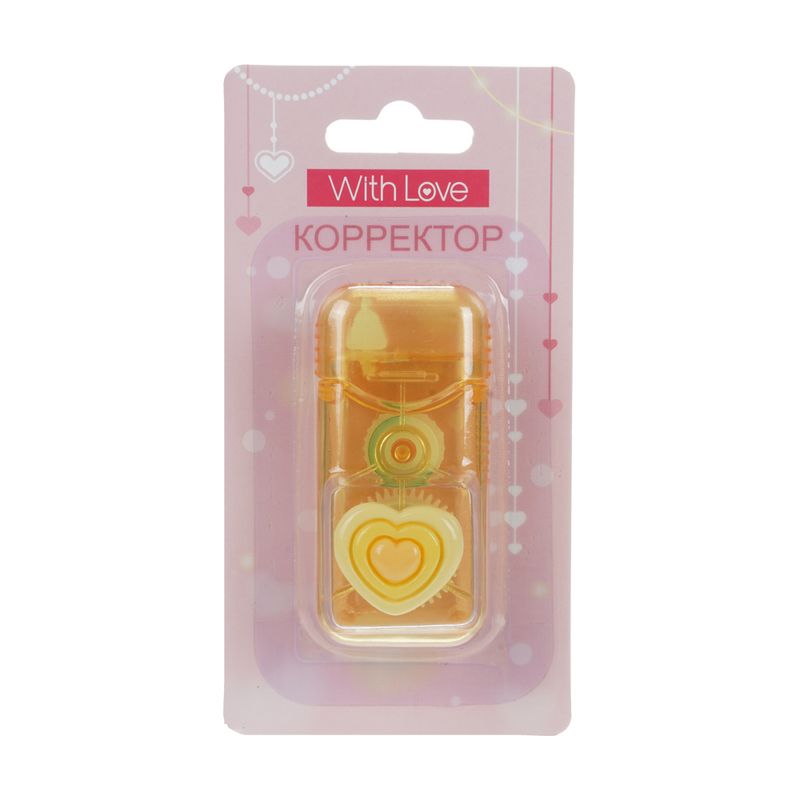 Корректор, With Love — компактный корректор с милым дизайном, который поможет легко и аккуратно исправлять записи. Ширина ленты: 5 мм. Длина: 3 м.Товар представлен в ассортименте.
