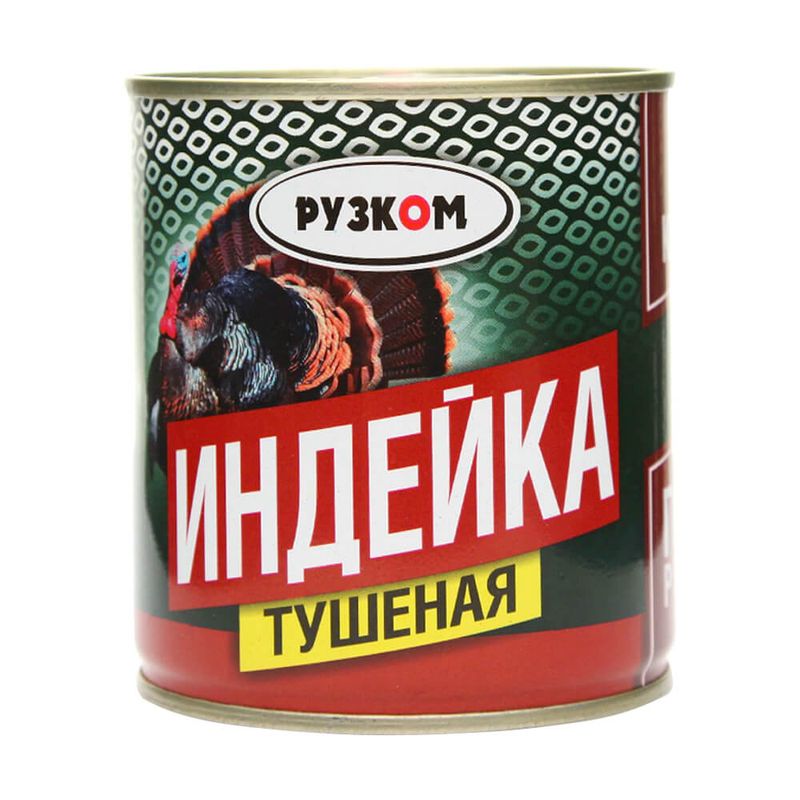 Индейка тушёная, РУЗКОМ – это консервы из диетического мяса птицы. Можно добавить в суп или просто разогреть и подавать с гарниром. Масса нетто: 290 г.